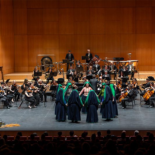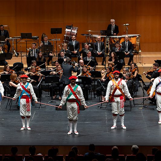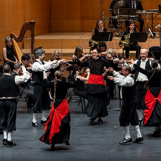 Con esta premisa, Sinfonía Navarra, junto al grupo de dantzaris ‘Ortzadar’ de Pamplona y varios actores de primer nivel como hilo conductor, aúna la música clásica y la danza a un nivel jamás escuchado ni visto. Y es que la danza dialoga con otras disciplinas, como la música y el teatro.