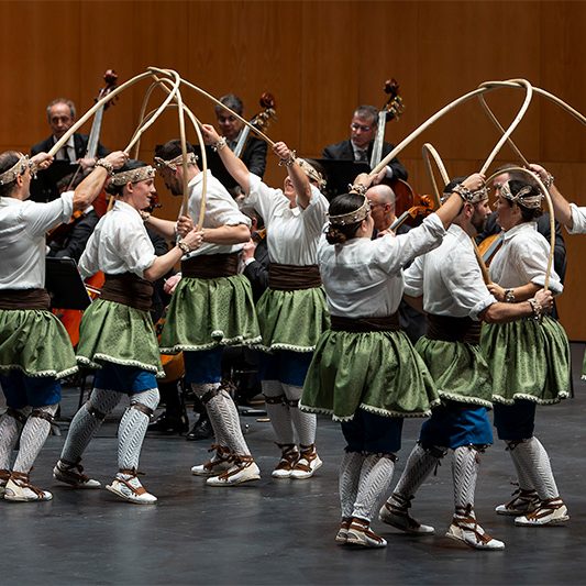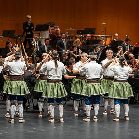 Los Dantzaris de “ORTZADAR” EN SU 50º ANIVERSARIO, junto con los músicos de la orquesta, dotarán de altísima calidad a un espectáculo apto para todos los públicos. La diversidad y riqueza cultural navarra se evidenciarán, desde el ojo de dos grandes compositores actuales, haciendo posible este minucioso trabajo ÚNICO, ORIGINAL E IRREPETIBLE.