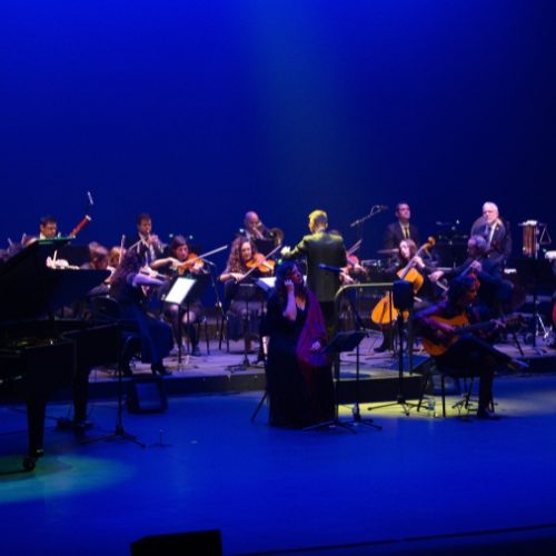 Esta increíble propuesta se define como «una puesta en escena alejada del recital clásico», por su cariz escénico, cuidado diseño de iluminación, la danza y esta vez, el peso de una orquesta sinfónica en el espectáculo.
