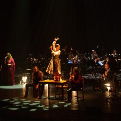 El navarro Sarasate se inspiró en la música popular andaluza y pre-flamenca para sus composiciones. Zorongo y Sinfonía Navarra devuelven a Sarasate a la raíz popular de la que brota su música en un ejercicio refinado de fusión flamenca entre lo clásico y lo popular. El espectáculo incluye danza flamenca y bolera.